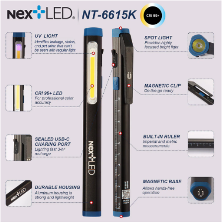 - [HANDS FREE CONVENIENCE] - Designed with 2 integrated magnets and a sturdy pocket clip, this pen flashlight rechargeable easily mounts to metallic surfaces or clips to your shirt—keeping your hands free while using it as a paint light, swirl finder light, or work light.